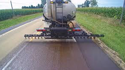 Step 2 : Application of Tack Coat : The bitumen binder is heated up to required temperature and a tack coat is applied to the surface.